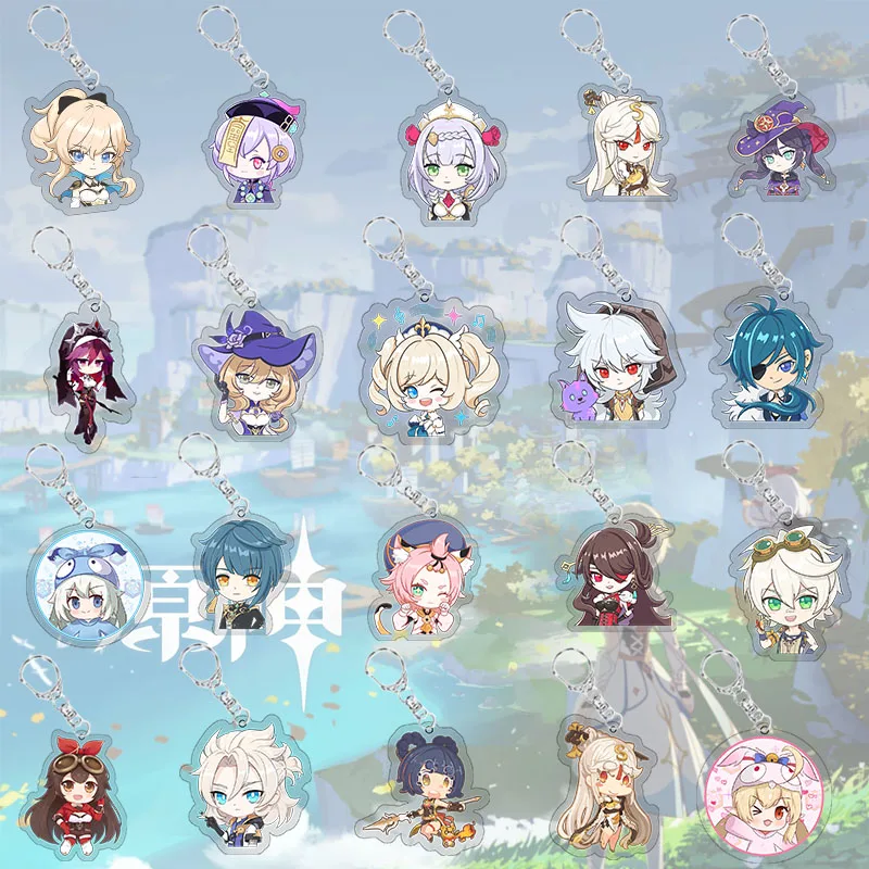 Genshin Impact Xiao Alberch Ganyu Morax Tartaglia Raiden Shogun Cosplay KeyChains Base Acrylic Stands Keyring Gift For Fans
