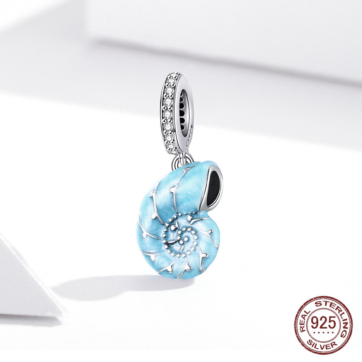925 стерлингового серебра Симпатичная синяя раковина Кулон Шарм подходит Оригинальный браслет для женщин Изготовление ювелирных изделий