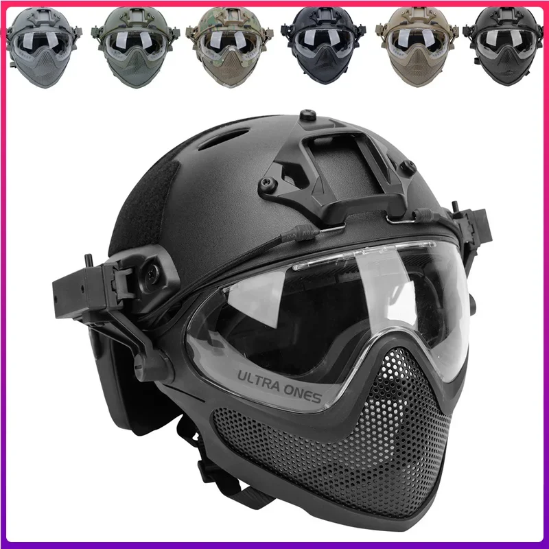 Тактическая Стальная Сетчатая Маска + шлем + Набор очков для страйкбола пейнтбола игры CS защитные шлемы для всего лица
