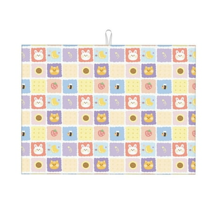 Large Dish Drying Mats for Kitchen Counter - Sticker Style Cute Rabbit Cat 18x24In Anti-Slip Absorbent Microfiber Drying Mat for Kitchen Counter Mat Dish Rack Mat with Hanging Loop