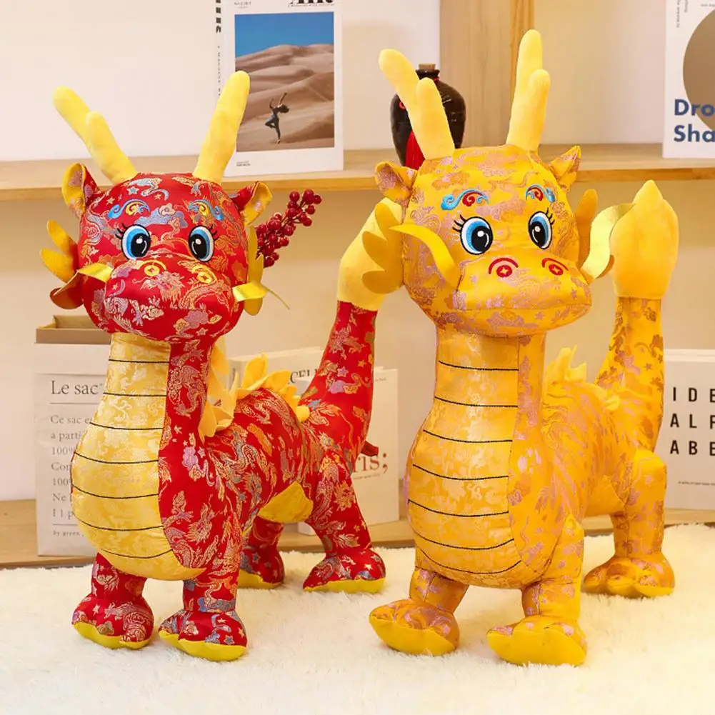 Талисман китайского дракона из мультфильма, плюшевая кукла с орнаментом 2024 года, Знак зодиака, стоячий набивной подарок китайского дракона