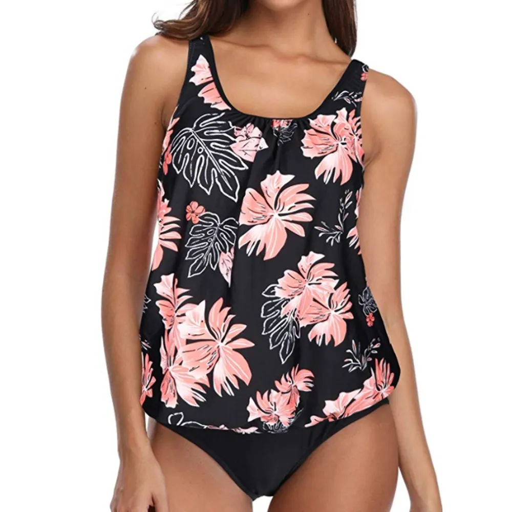 Танкини купальник размера плюс женский винтажный купальник большого размера 2020 пляжная одежда с принтом женский купальный костюм 3XL