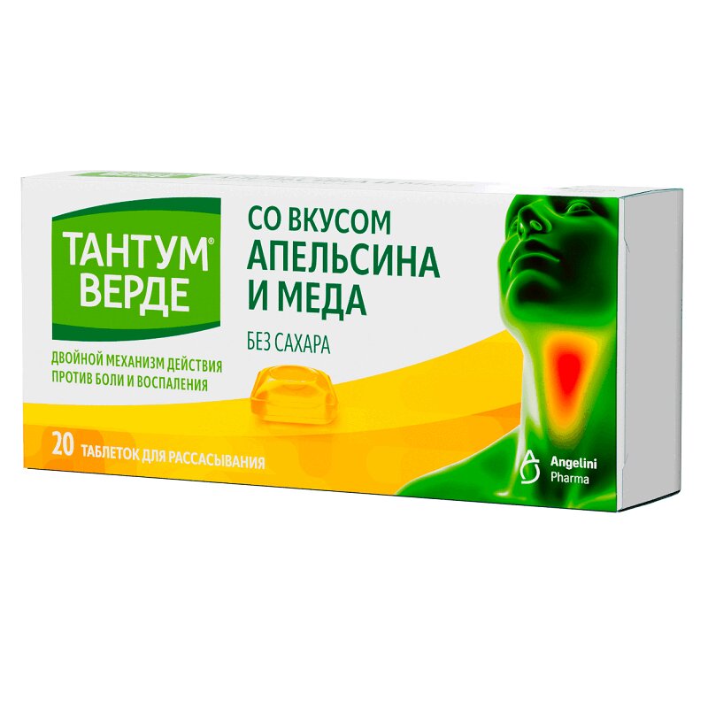 Тантум Верде 3 мг таблетки для рассасывания Апельсин-Мед 20 шт