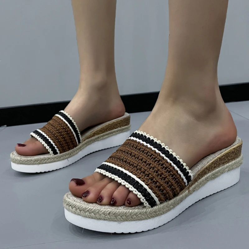 Тапки женские в римском стиле, повседневные удобные плетеные пляжные тапочки на танкетке, лето 2023