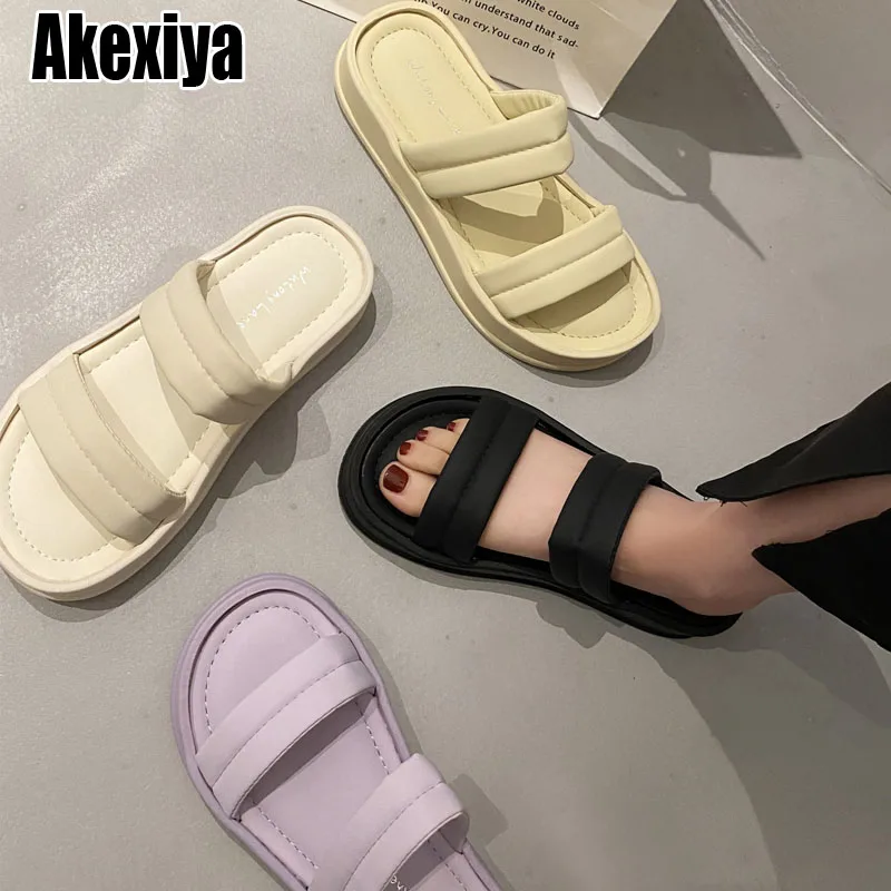 Тапки женские пляжные на платформе, удобные сланцы, дизайнерская обувь с ремешком, для прогулок, бежевые, bc6211, лето