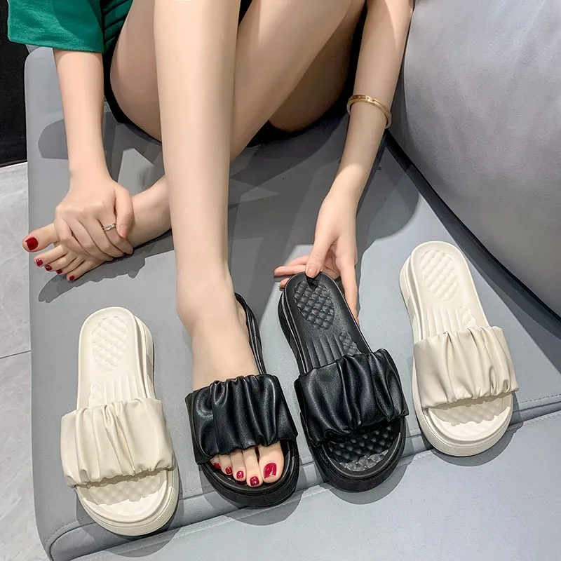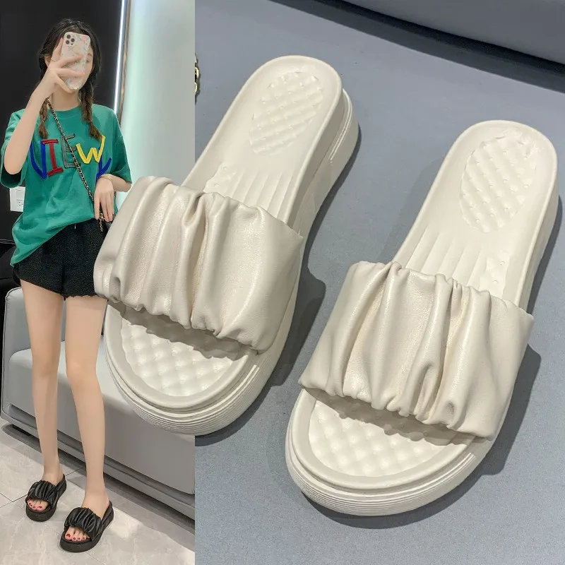 Тапки женские с открытым носком, однотонные повседневные пляжные, на толстой платформе, сланцы, лето 2023