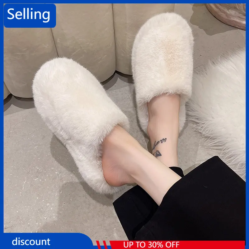 Тапки Baotou Женские однотонные, теплые домашние, плоская подошва, хлопок, шерсть, Осень-зима 2023