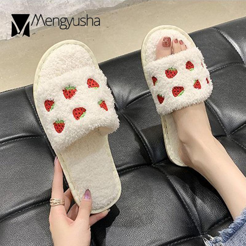 Тапочки для девочек из клубничной овечьей шерсти, женские зимние плюшевые туфли для дома, женские уютные теплые хлопковые пантуфли, домашние пушистые меховые шлепанцы 2024 6 белый