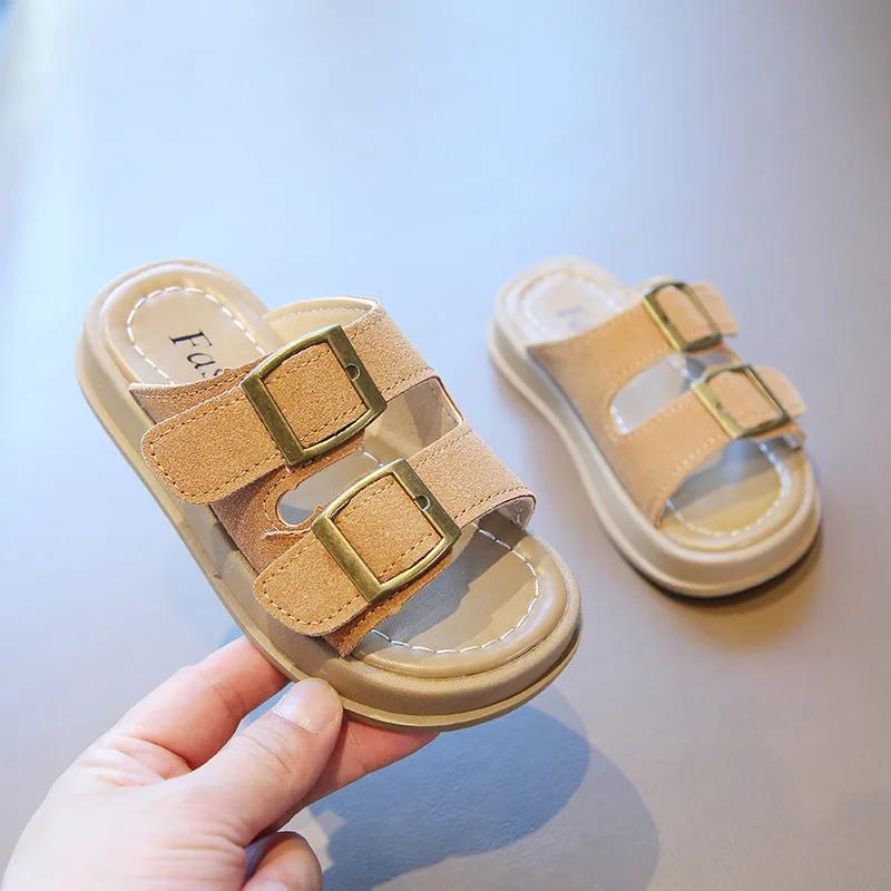 Тапочки для мальчиков и девочек, летняя новая детская обувь для улицы, модные мюли на толстой подошве для малышей, повседневные пляжные тапочки на плоской подошве с открытым носком 23 коричневый