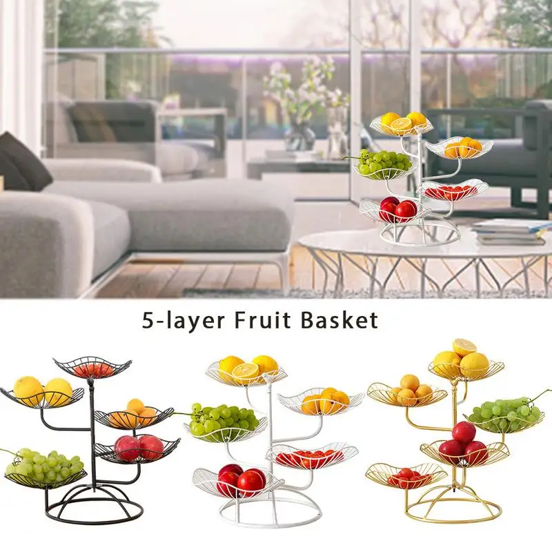 Тарелка для фруктов, пятислойная корзина для фруктов, чаша для фруктов с листьями лотоса, железная подставка для фруктов, домашние креативные закуски, стол для Хранения Хлеба