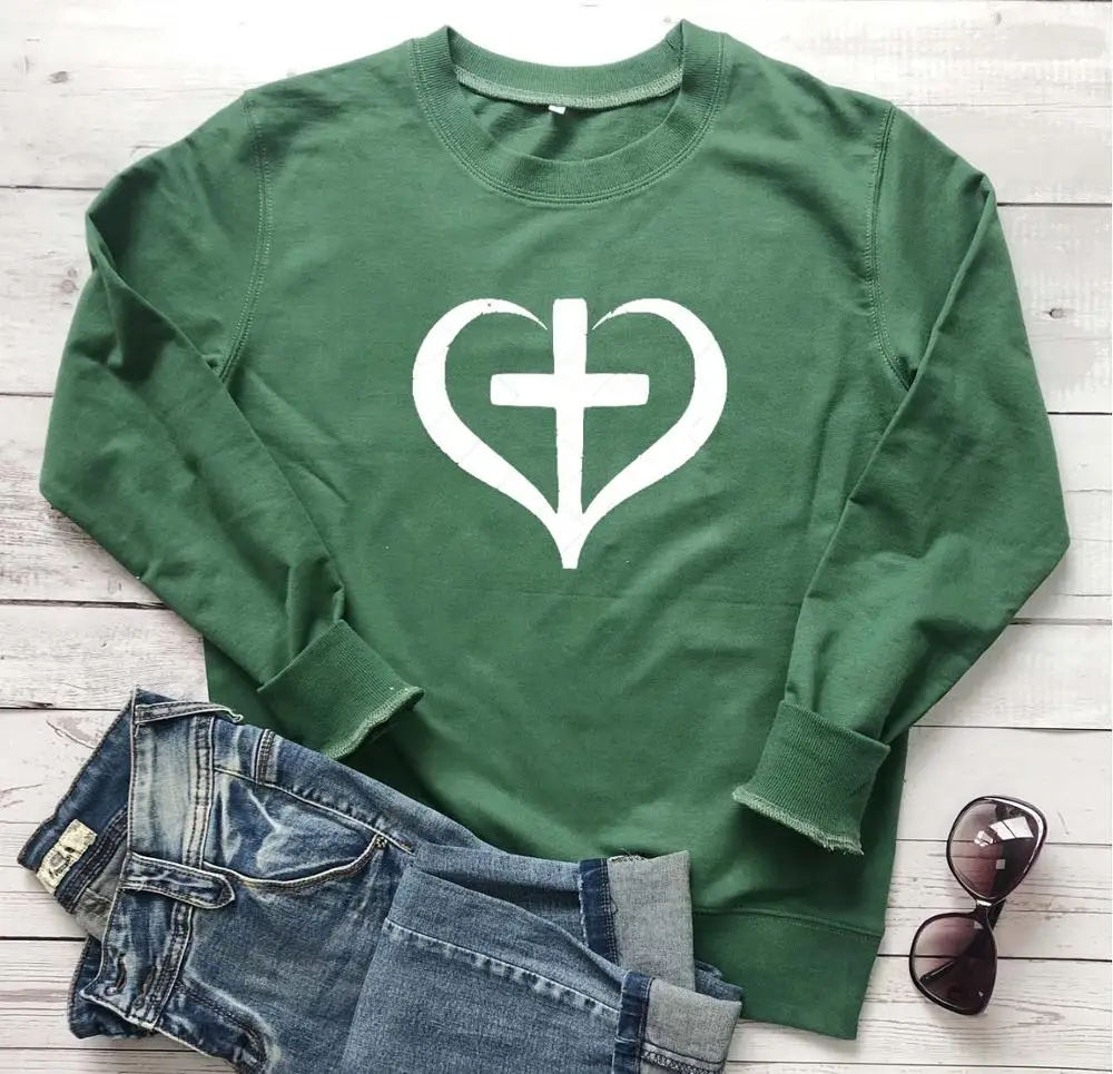 Cross Religious heart graphic women fashion religion Christian Bible baptism young hipster simple pure sweatshirt tops L487