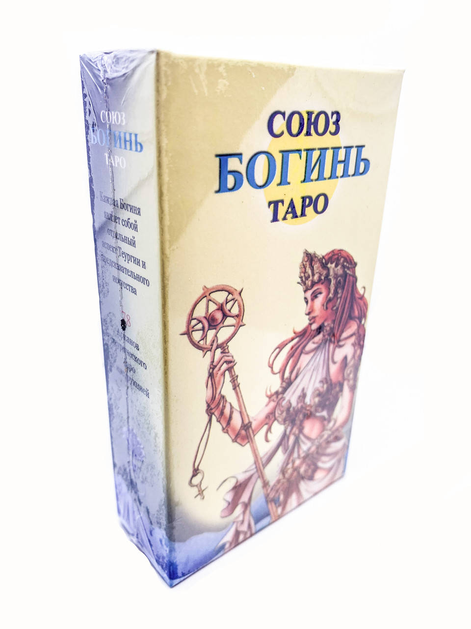 Таро Союз Богинь состоит из 78 карт. В этих картах в ликах древних женщин - Богинь семи континентов - воплощена квинтэссенция женской магии. Каждая Богиня являет собой отдельный аспект Теургии и Предсказательного искусства, которыми поделится с нами. Мы сможем выбрать себе покровительниц и помощниц в нашем сложном и увлекательном путешествии по жизни. Они помогут нам найти правильную дорогу, станут путеводной звездой.