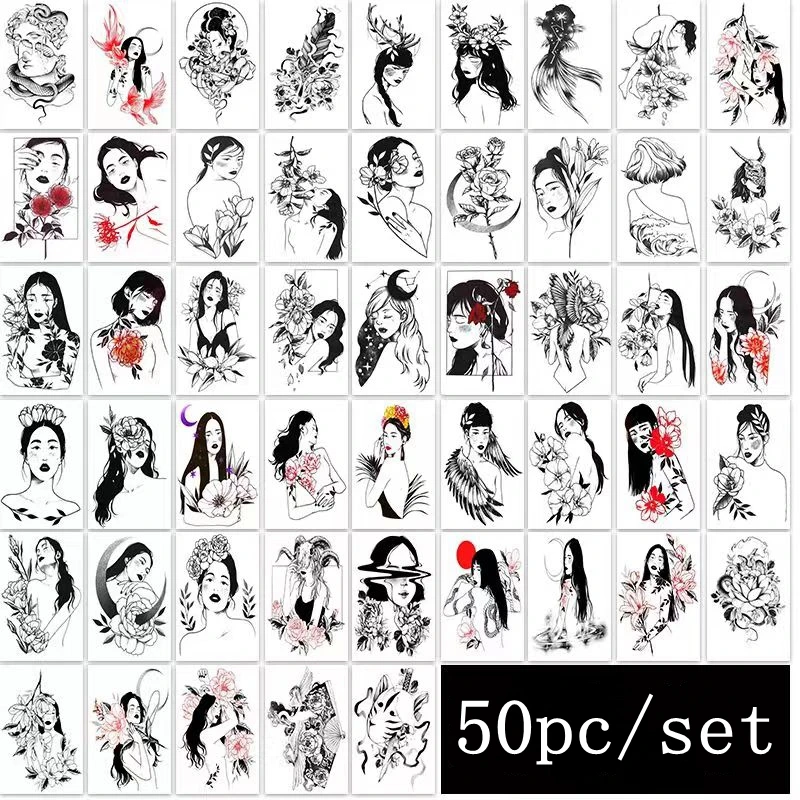 Татуировка эфемера для девушек, 50 шт., сексуальная татуировка, временные водостойкие татуировки, Временные татуировки, эстетические, руки, лодыжки, темные татуировки