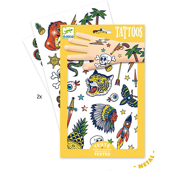 Детские блестящие татуировки для ребенка Бэнг Бэнг от французской компании Djeco придутся по душе маленьким модникам и сделают их образ необычным и интересным. Татуировки легко приклеиваются и отклеиваются с кожи ребенка, как наклейки. Они дерматологически протестированы и безопасны для ребенка, не раздражают кожу. В комплекте: 2 листа с блестящими татуировками в виде необычных рисунков с индейцами, оружием и забавными символами. Украшение себя яркими татуировками станет отличным развлечением для детской вечеринки или веселой игры с друзьями.  Набор продается в подарочной упаковке. У нас вы можете купить татуировки для ребенка Бэнг Бэнг от французской компании Djeco (Джеко) по самой привлекательной цене с доставкой по всей России.