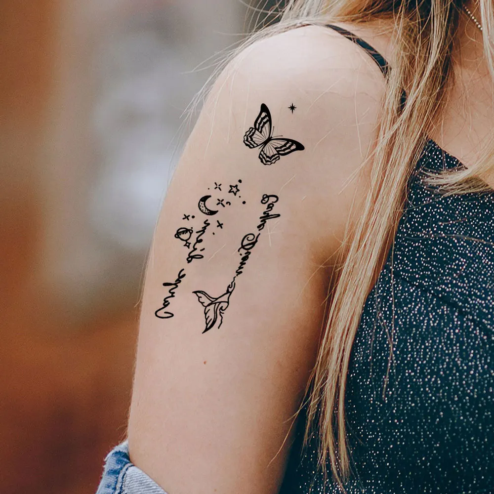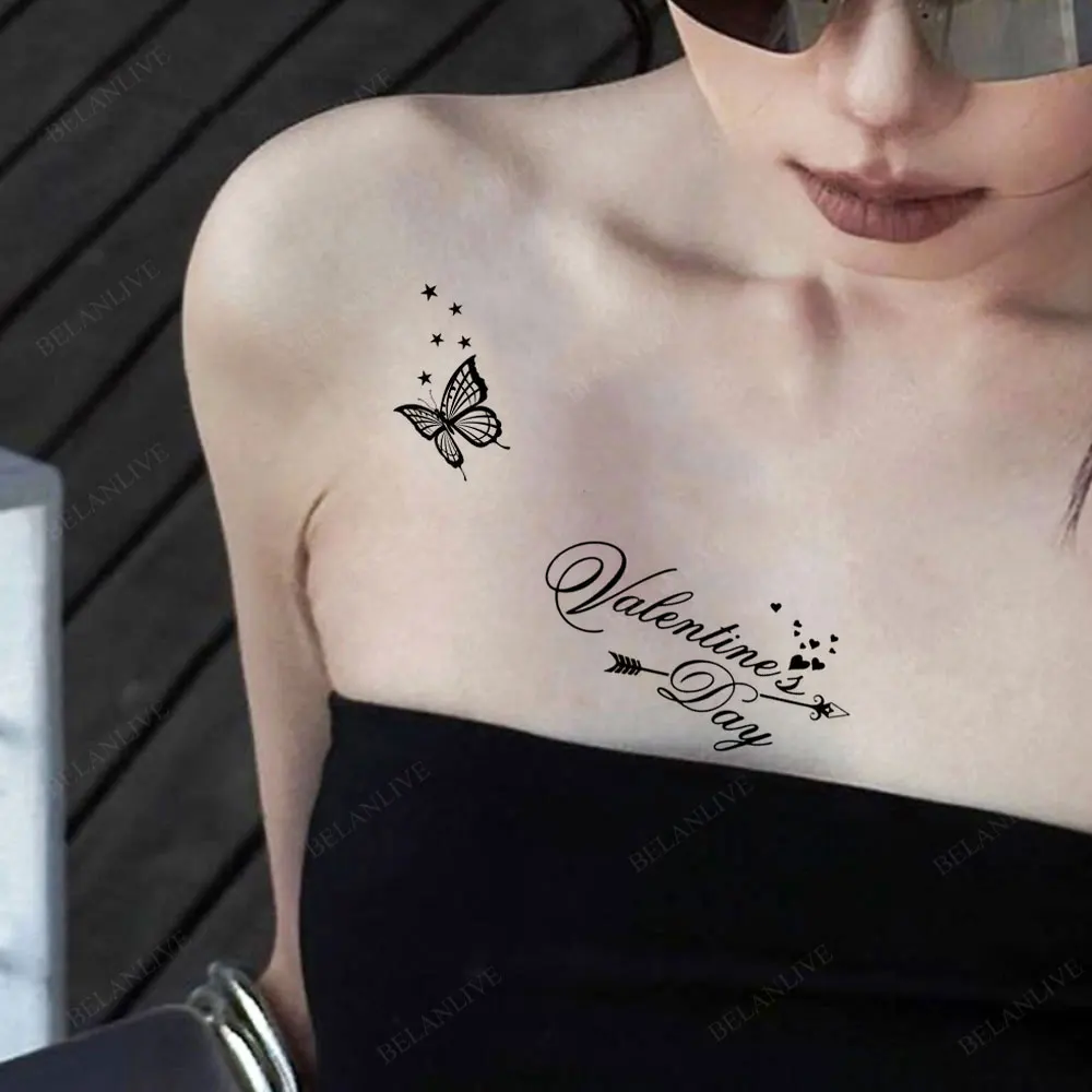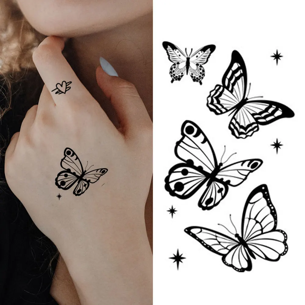 Тату-наклейки с черными цветами для мужчин и женщин, милая тату-наклейка для тела, бабочки, розы, листа, 30 шт.