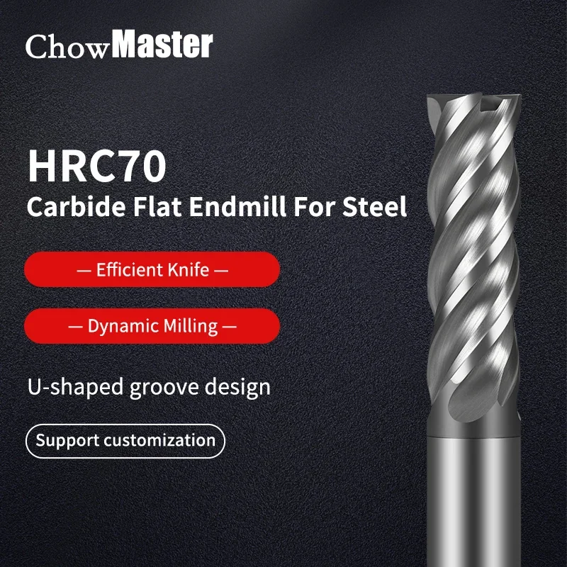 Chowmaster HRC70 Твердосплавная концевая фреза с ЧПУ, неравная спираль, эффективный вольфрамовый резак, 4 флейты, инструмент для обработки металлической стали 6, 8, 12, 14, 20 мм