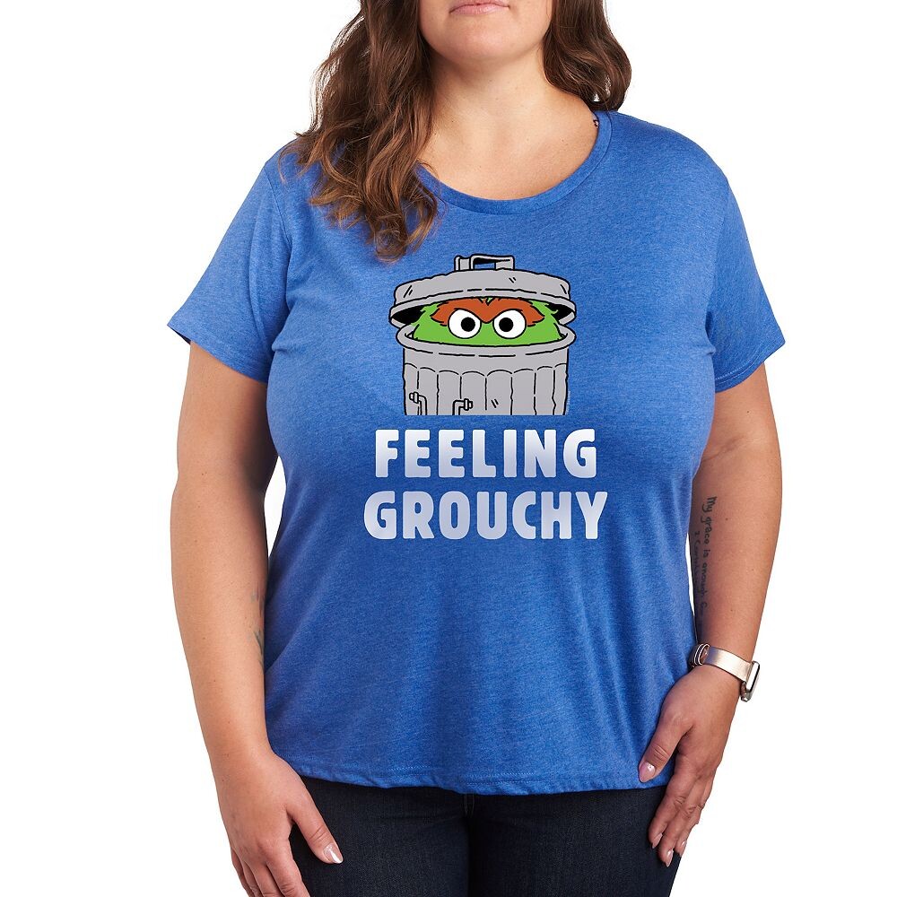 Футболка Plus с рисунком «Улица Сезам» с ворчливым рисунком Licensed Character, цвет Heather Royal Blue
