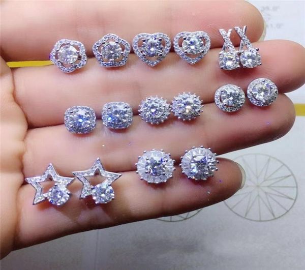56 styles trendy lab diamond stud earring 100 original 925 sterling silver party wedding earrings for women bridal jewelry gift9943325, Golden;silver