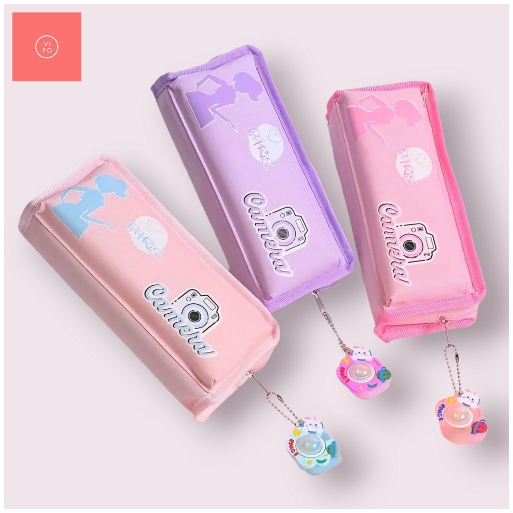 Tempat Pensil Kotak Pensil Pencil Case Anak Perempuan Sekolah Ritsleting Dua Sekat