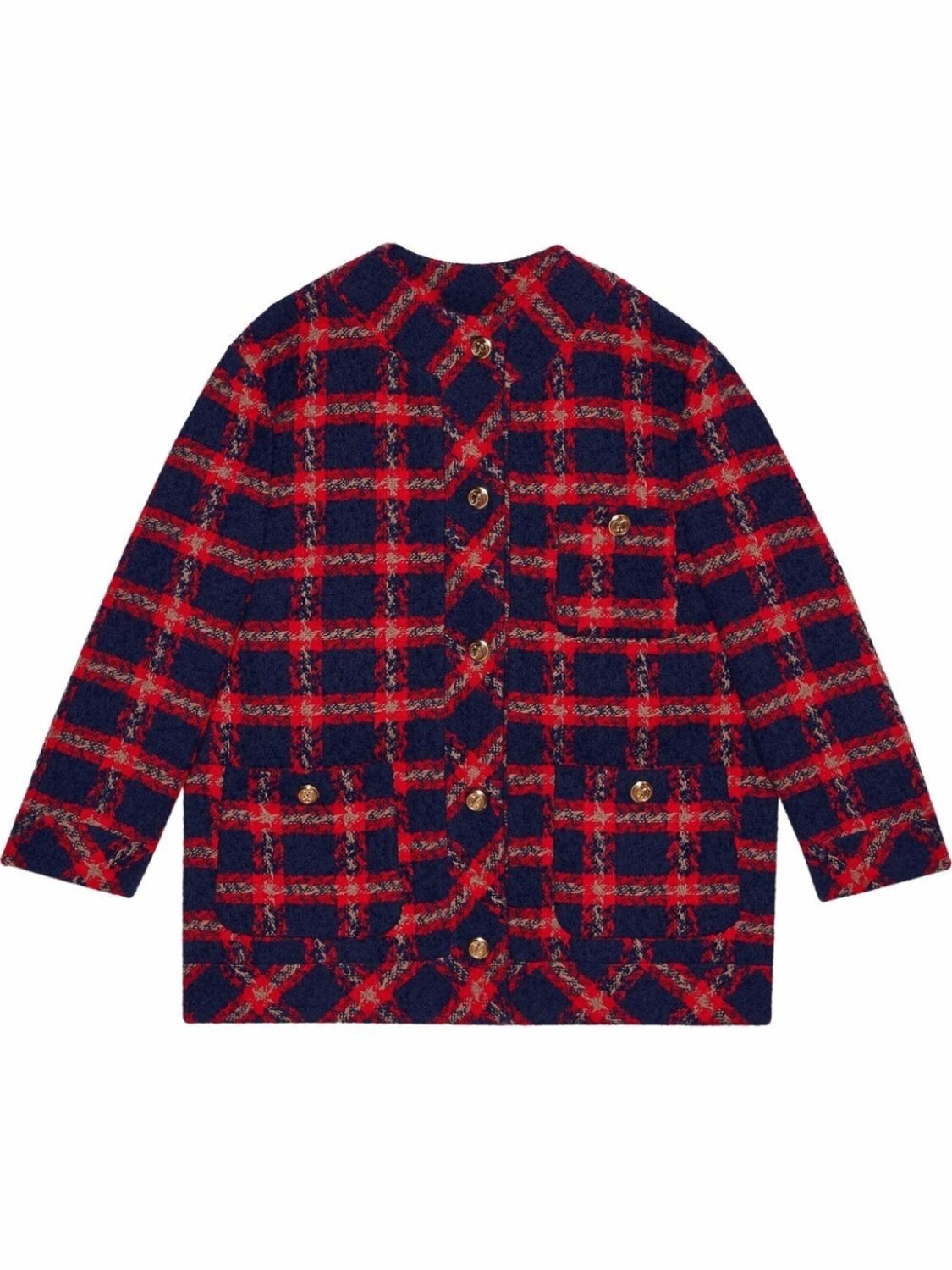 Твидовый жакет оверсайз в клетку Gucci, синий
