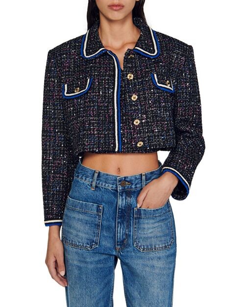 Твидовый укороченный жакет Vicky Sandro, цвет Multi