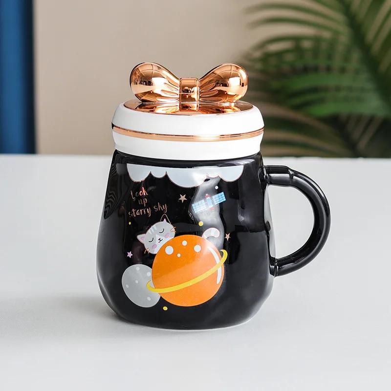 Творческая кружка с золотым бантом, пара керамических чашек с крышкой, оригинальные кружки, кофейные чашки, кружки для чая, новогодние кружки, посуда для напитков, красивая 400ml