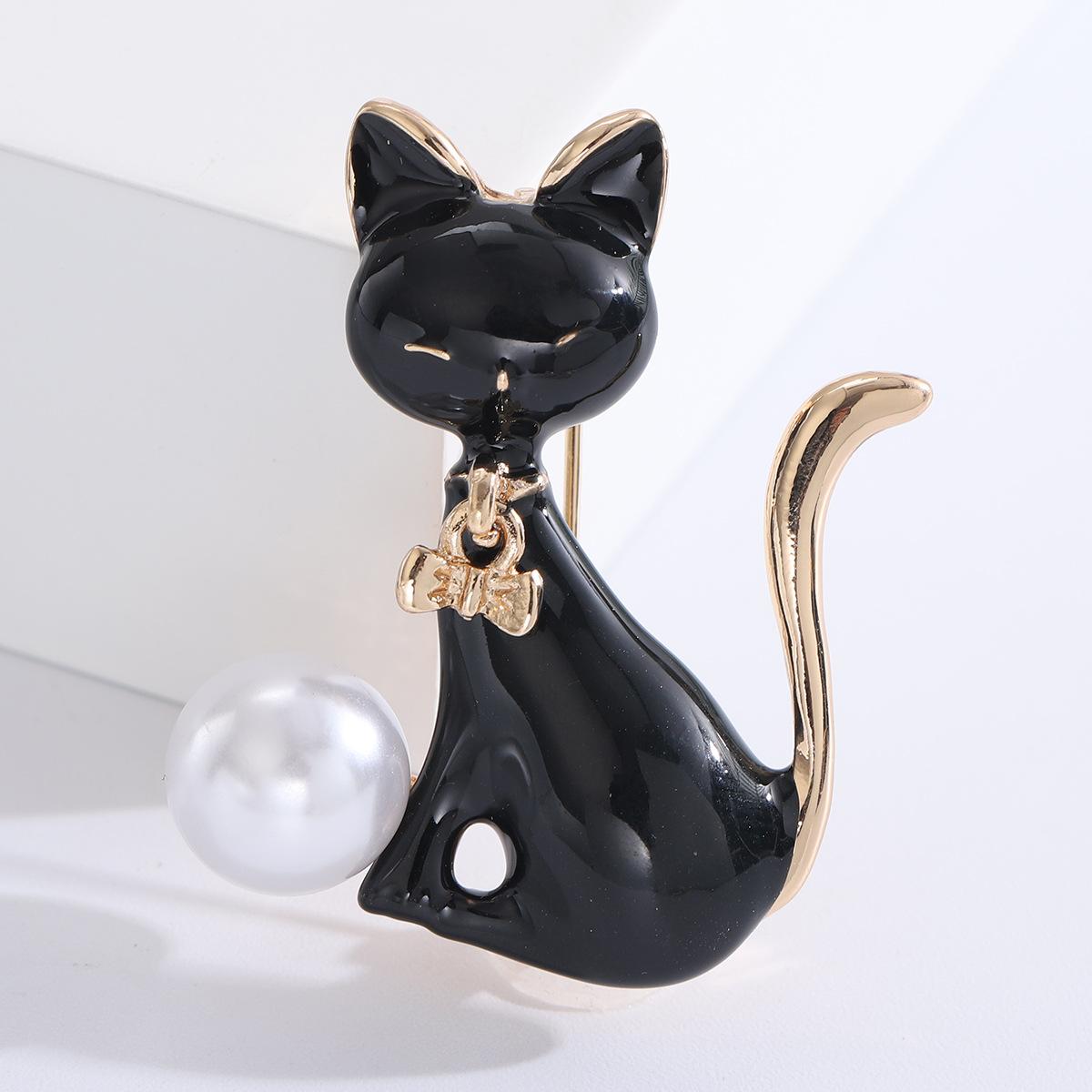 Творческая модная личность, жемчужная эмалевая капающая брошь в виде котенка, универсальная брошь в виде животного