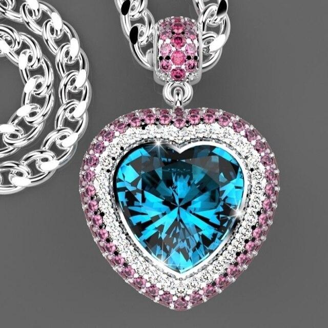 Творческий доход Кристалл Море Сердце Ожерелье Любовь Роскошь Сапфир Сердце Ожерелье Романтичный Дамы Свадебный Подарок Подвеска Для Девочек синий