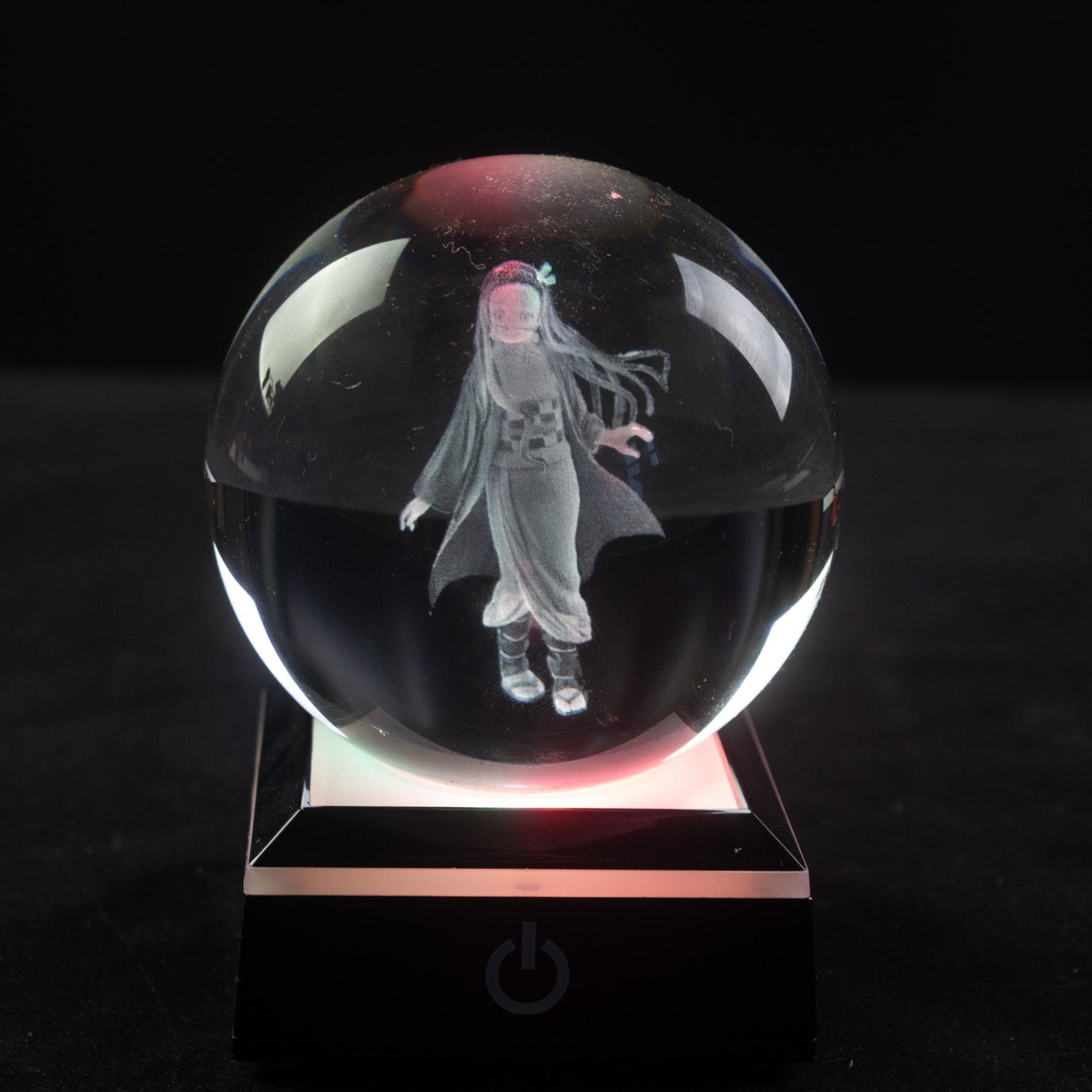 Творческий 3D внутренняя резьба светящийся хрустальный шар Галактика Солнечная система подарок на день рождения административное украшение дома 8cm (black and silver)