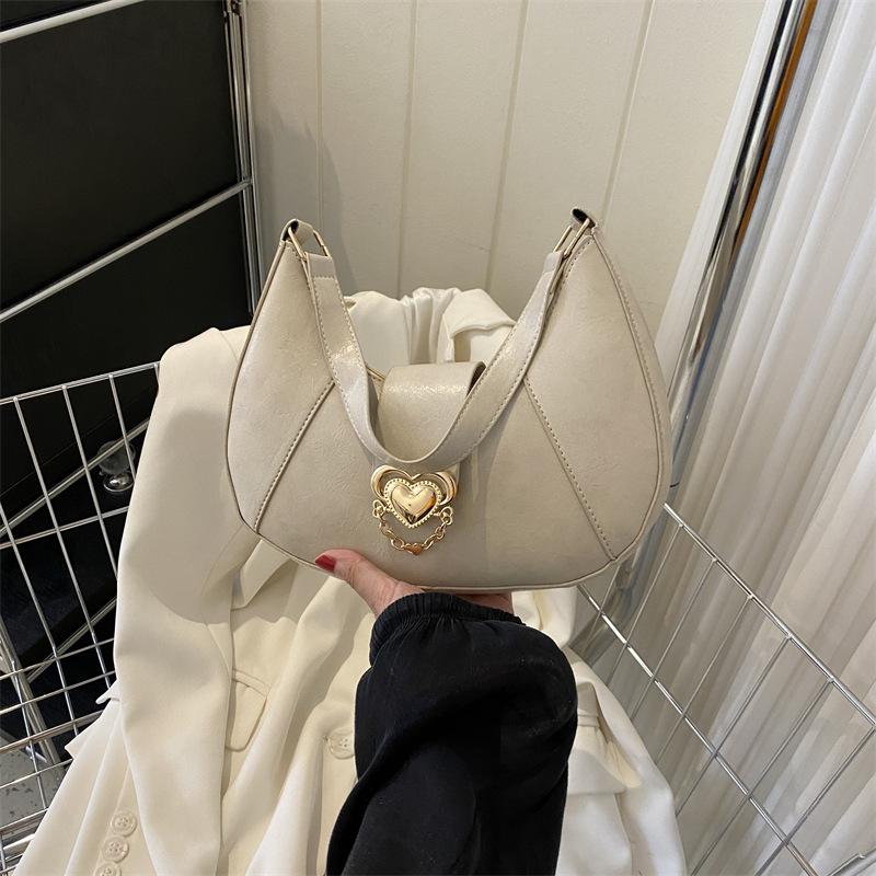 Текстура модная модная сумка с металлическим дизайном и полумесяцем 2024 года, новая универсальная изысканная женская сумка через плечо, сумка в форме полумесяца белый