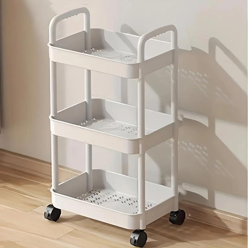 Тележка для хранения вещей Кухня Бытовая Полка для хранения вещей Спальня Передвижная полка для хранения вещей Ванная комната Туалет Коллекция Полка для хранения вещей White-1pc