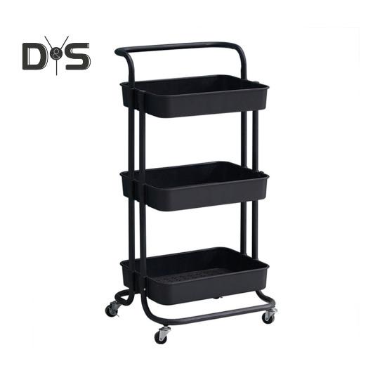 Тележка на колесах с 4 колесами, большая вместимость, прочная несущая способность, тележка для хранения на колесах с ручкой, многофункциональные полки для хранения чёрный