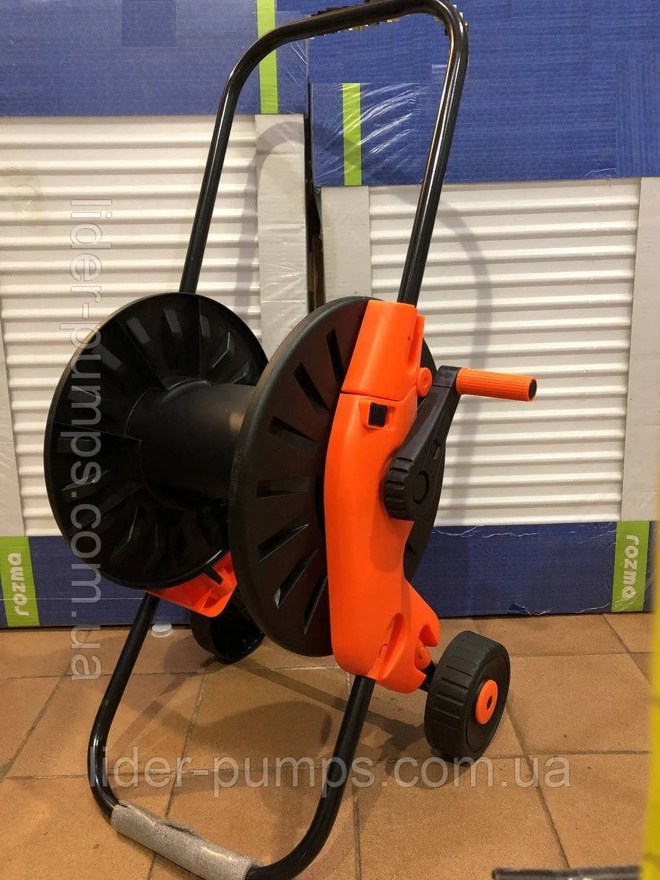 Тележка для лёгкой транспортировки шланга выполнена в виде классической модели. Такая тележка идеально подходит для садовых участков среднего и большого размера. Наличие приводной ручки облегчает эксплуатацию тележки. Подсоединение шланга осуществляется под углом, за счёт чего шланг не перекручивается и позволяет всегда подавать воду с максимальным напором. Вращающаяся ось предотвращает перекручивание шланга при его намотке и размотке.