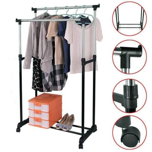 Представляем Вам удобный и выгодный способ размещения вашей одежды - стойка для одежды - Double-Pole Clothes-horse. Она не займет много места, а благодаря колесикам вы всегда сможете изменить её место нахождения.