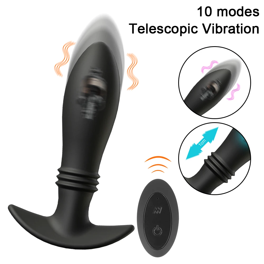 Телескопический фаллоимитатор, вибраторы, секс-игрушки, двигающие движения, Анальная пробка, 10 режимов, Анальный вибратор, мужской массажер простаты