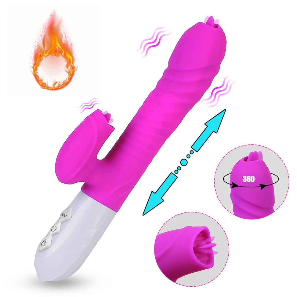 Телескопический фаллоимитатор с подогревом для стимуляции клитора, Женский Вибратор для лижущего языка, точки G, вагинальный Массажер для женской мастурбации