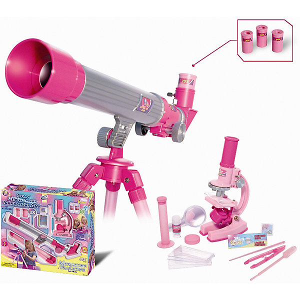 Телескоп и микроскоп для девочек (35 предметов) – развивающая игрушка, выполненная в розовом цвете, который должен понравиться юным любительницам естественных наук.