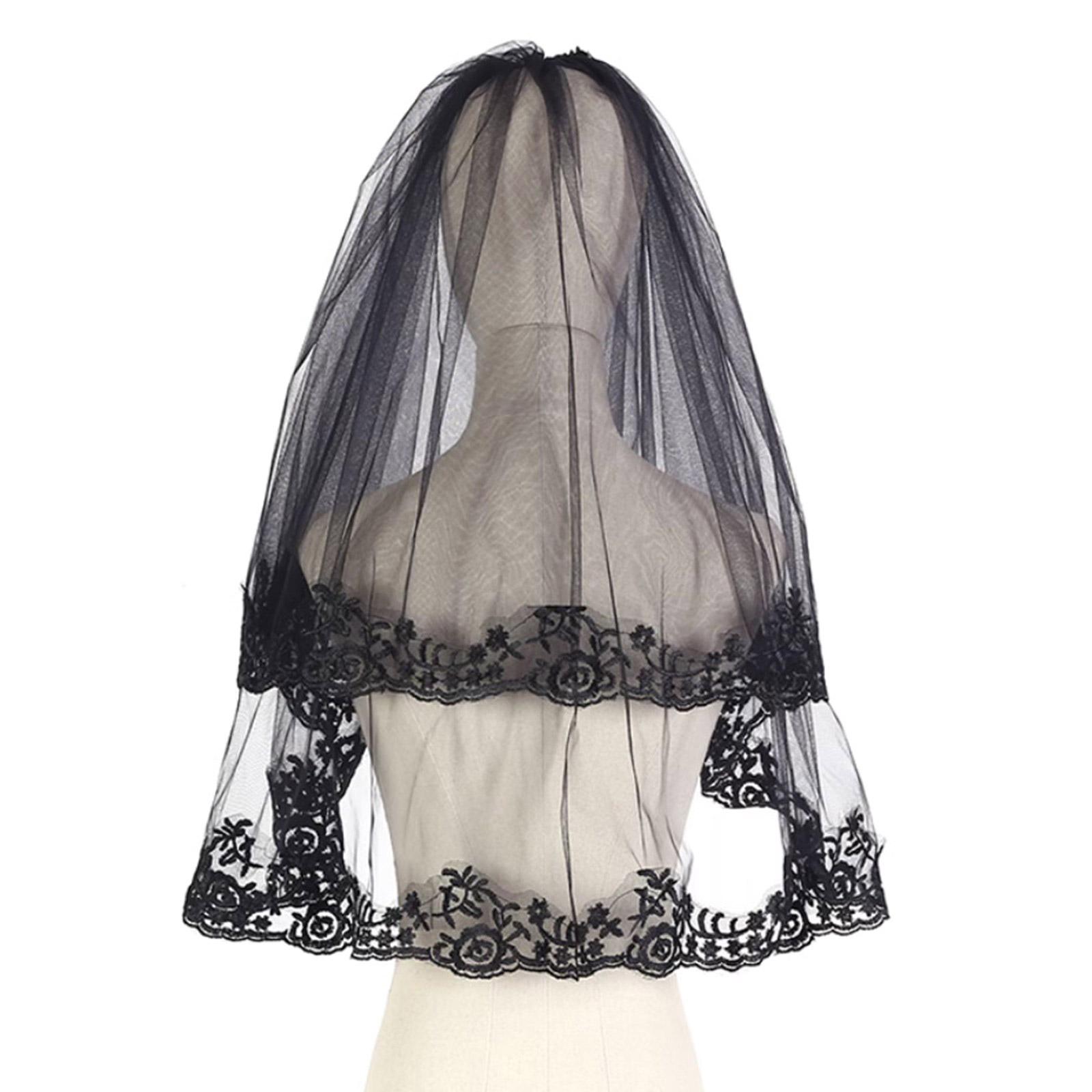 Темная вуаль Кружевная вуаль Мантилья Головной убор Свадебные аксессуары для волос Черная свадебная вуаль Платок Кружевная черная вуаль B