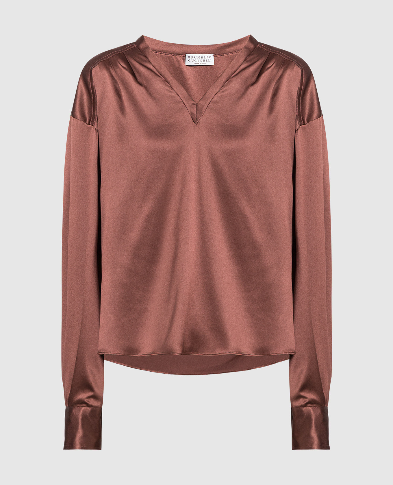 Темно-коричневая блуза из шелка с эколатунью, Коричневый, Блузы