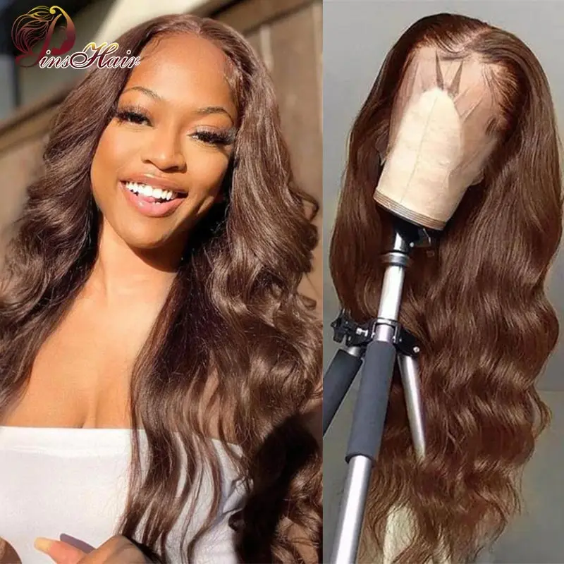 Темно-коричневые волнистые волосы на сетке спереди, парики из человеческих волос, бразильские, медово-коричневые, на сетке спереди парики д...