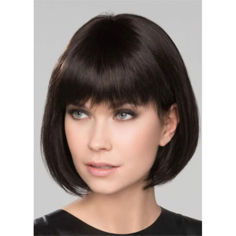 Темно-коричневый Боб полный парик челки Прямые волосы без крышки 10 дюймов