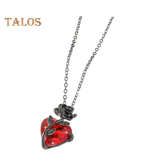 Темно-красное искусственное хрустальное ожерелье с подвеской в виде розы для женщин, колье в виде цветка с сердечком из циркония, готическое панк-украшение для свиданий, повседневной носки, банкета, вечеринки чёрный