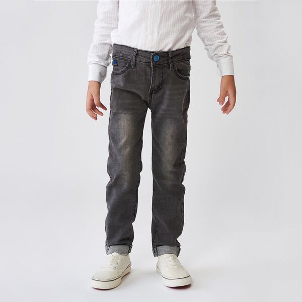 Темно-серый Повседневный Джинсы Текст Легкий Эластичный Джинсы для мальчиков, size features are:Bust: ,Length: ,Sleeve Length: