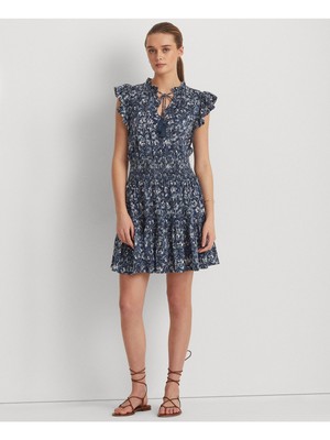 Темно-синее женское платье RALPH LAUREN с завязками на талии и рукавами-крылышками, Navy