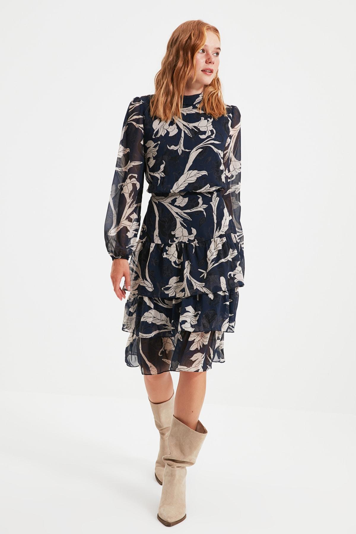 Темно-синее платье с рюшами TWOAW21EL0354..