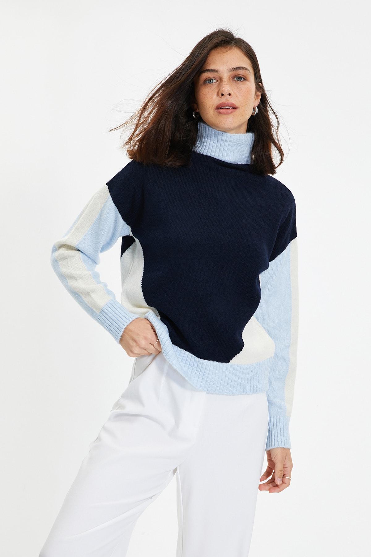 Темно-синий трикотажный свитер с цветовыми блоками TWOAW21KZ1906