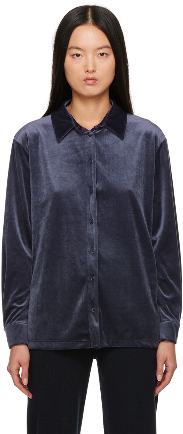 Темно-синяя рубашка с раздвинутым воротником Max Mara Leisure