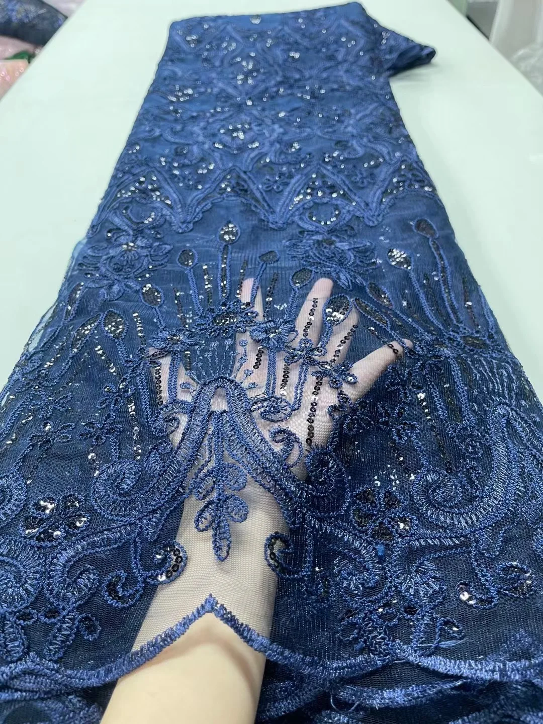 Темно-синяя французская Тюлевая молочная шелковая кружевная ткань 2023, Высококачественная нигерийская стандартная ткань для свадебных выпускных платьев