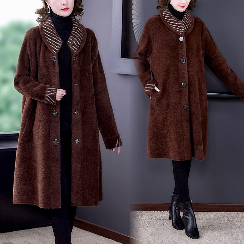 Темпераментная женская одежда из норкового бархата среднего возраста, новое пальто для мам на осень и зиму, свободное и утягивающее пальто большого размера
