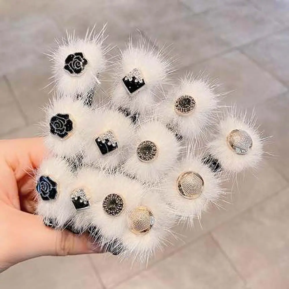 Темпераментная милая плюшевая заколка для волос с шариком элегантные плетеные заколки для волос для женщин стразы жемчужные боковые закол...